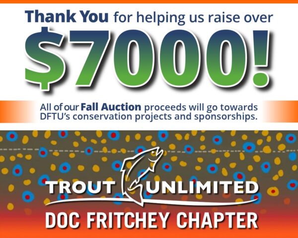 We’ve raised over $2,000 from last year’s auction total! That means more funding for our educational programs and sponsorships, conservation and stream projects, etc. Thank you again to all who bided on, and donated, over 45 various trips, gear, art and more!